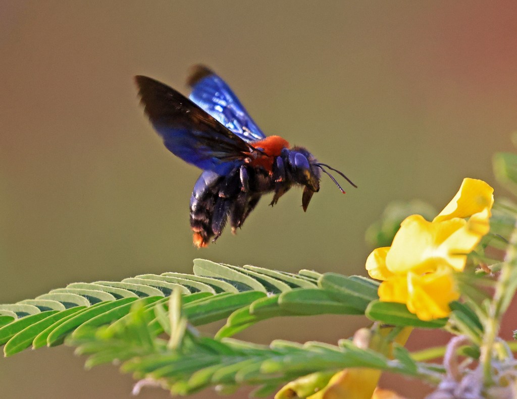 A bumblebee preparing to land on a Senna Tree bloom on the RICA campus. April 10, 2023.