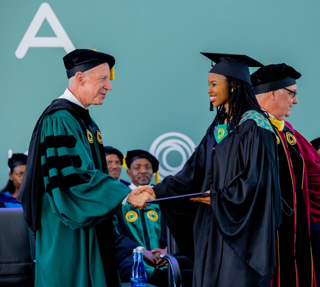 RICA’s first graduate to cross the stage – Germaine Akeza (RICA photo). August 8, 2023.