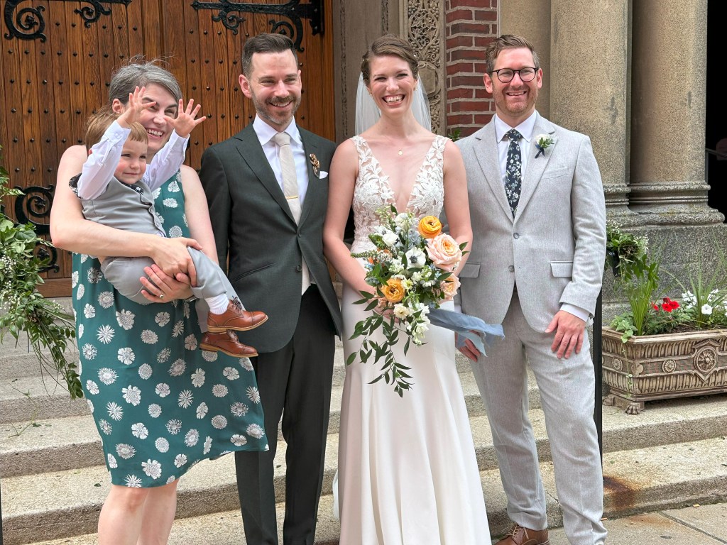 Ryan and Alison after their wedding, along with Alice, Asher and Ben, in Cambridge Massachusetts. July 15, 2023.