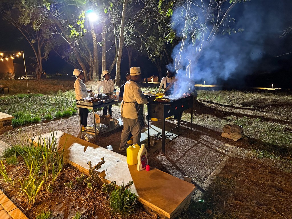 One of RICA’s kitchen staff grilling brochettes for a reception we held at Kilimbi House for 3rd Year Students before they left campus for their six-month internship. January 11, 2024.