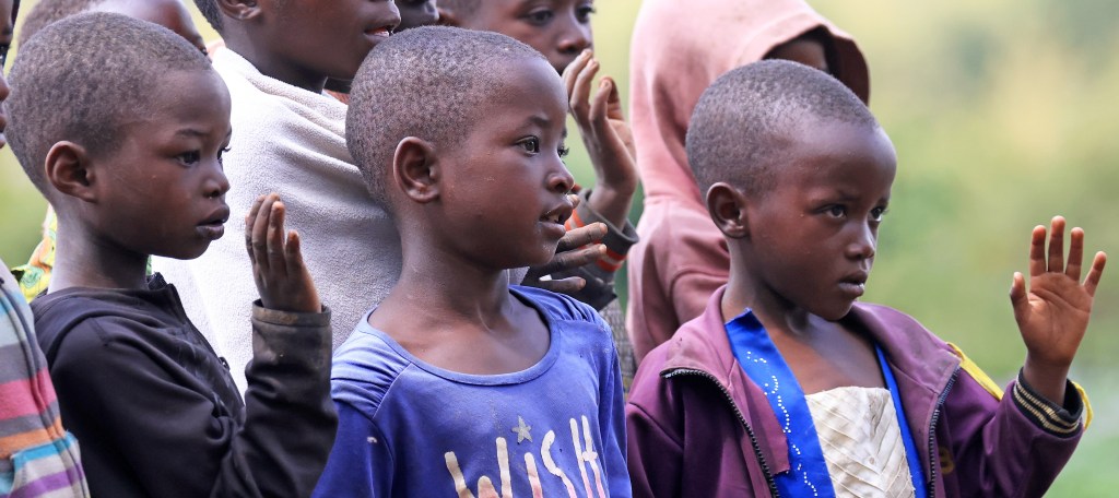 Children watching visitors depart from their fields after seeing golden monkeys. September 2, 2023.