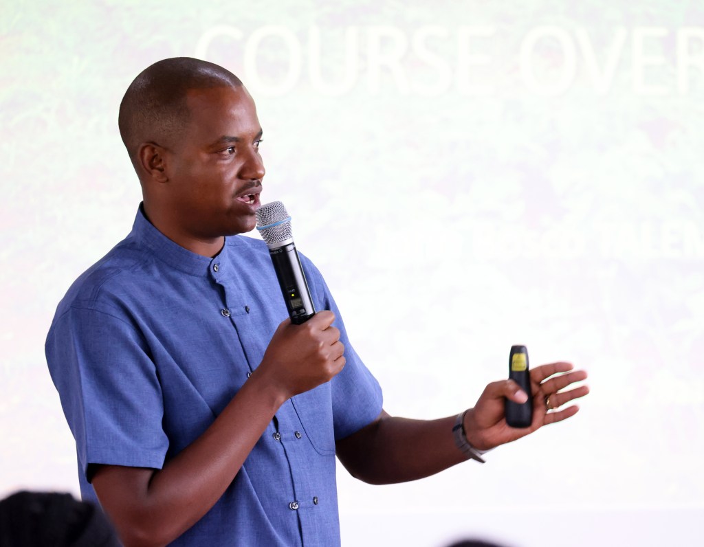 John Bosco Talemwa, RICA’s Mechanization Lecturer, coordinates a team of eight faculty in teaching AGR 101 Practical Farming. September 11, 2023.