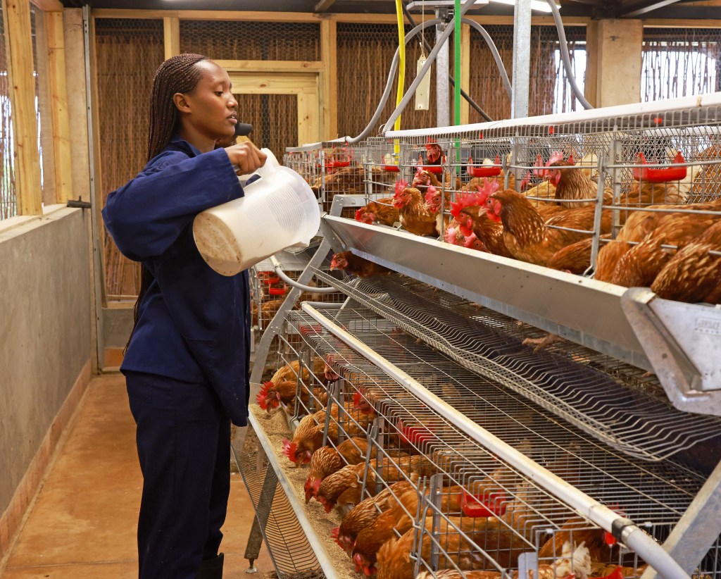 A RICA Second-Year student feeds laying hens in the poultry enterprise. November 14, 2023.