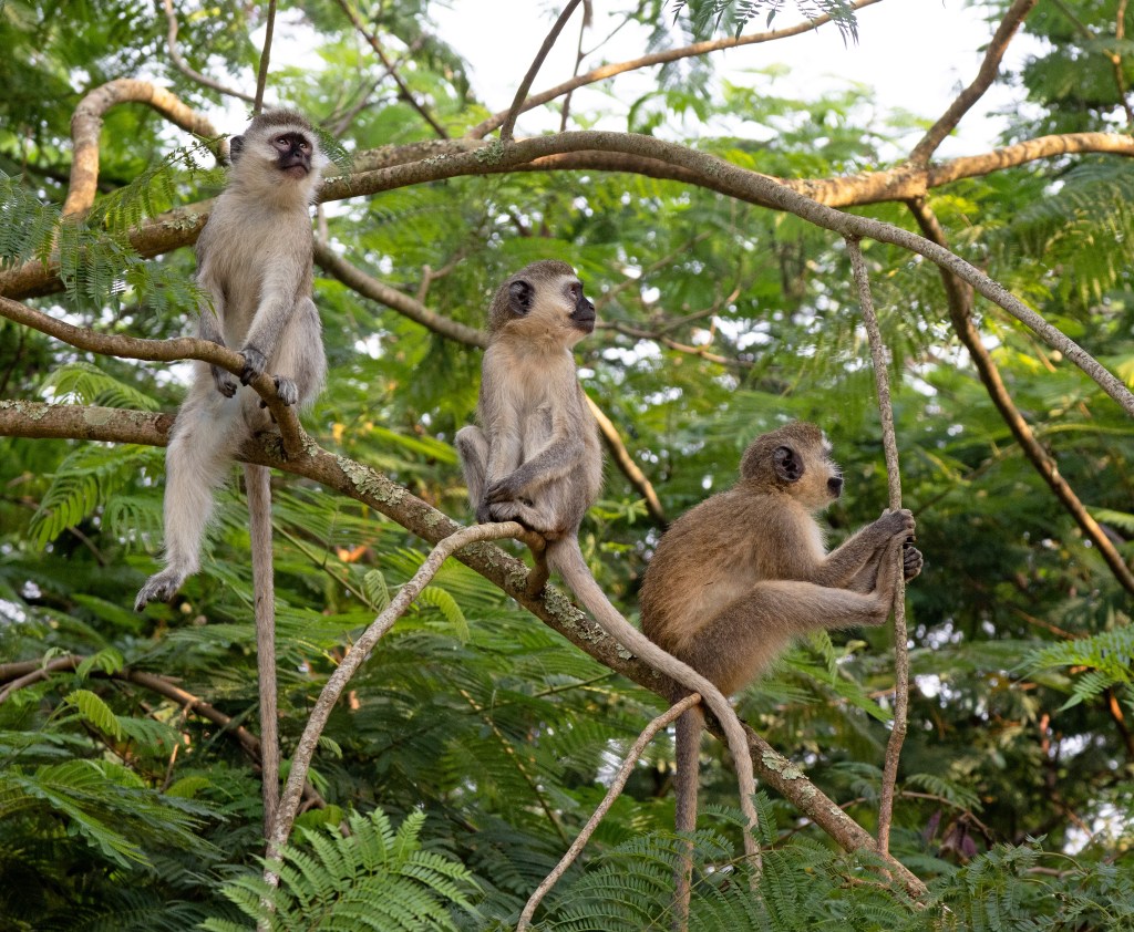 Young Vervet monkeys posing near RICA’s silvipasture. January 9, 2024.
