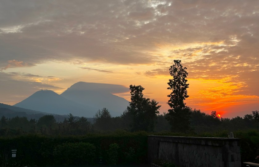 Sunrise over the Virunga Mountains, from the Ingagi Park View Lodge. September 19, 2024.