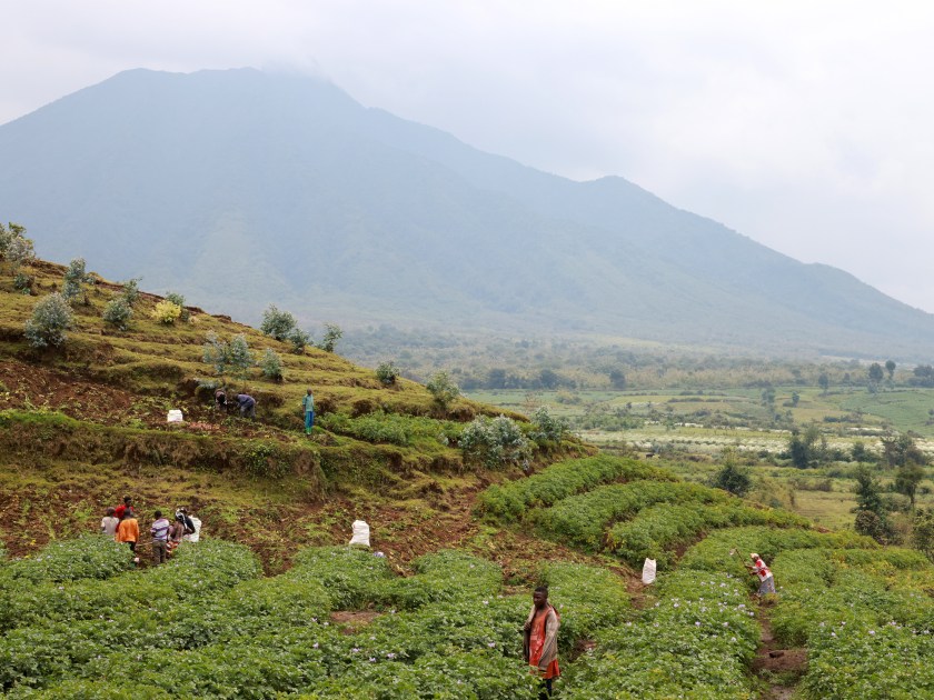 Potato fields at the edge of Volcanoes National Park, on Golden Monkeys trek. September 19, 2024.