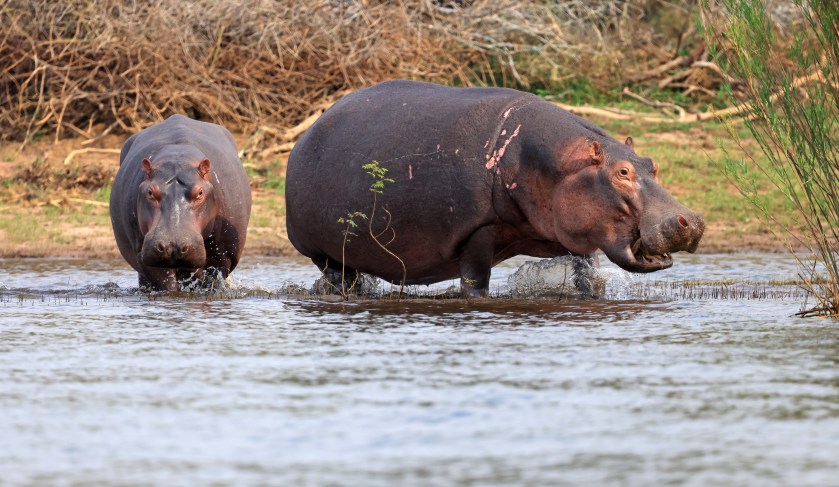 Hippos entering the water, Lake Ihema, September 17, 2024.