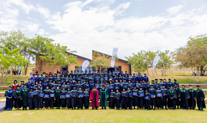 The Rwanda Institute for Conservation Agriculture (RICA) Class of 2023, along with His Excellency Paul Kagame, Howard Buffett, RICA administration and faculty (RICA photo). August 8, 2023.