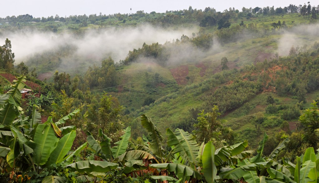 Looking back to Lake Kilimbi on a Sunday morning bike ride. March 6, 2022.Grey-Crowned Crane, at the Gashora Bird Watching Spot north of the campus of the Rwanda Institute for Conservation Agriculture (RICA). January 30, 2022.Great White Pelican. Gashora Bird Watching Spot. January 30, 2022.White-Faced Whistling Duck. Gashora Bird Watching Spot. January 30, 2022.RICA Second Cohort students preparing to plant vegetables in a new production field. February 11, 2022.Hippo tracks through a field of newly planted pepper plants on the RICA campus. The papyrus marsh along Lake Kilimbi is in the background. February 28, 2022.Maize drying on racks outside a home. North of Lake Sake, which is northeast of RICA. February 18, 2022.Dried maize, ready to be bagged and trucked to the buyer. Nasho Irrigation Project, February 25, 2022.RICA students, along with RICA faculty and staff, visiting with a farmer in his field at the Nasho Irrigation Project. The farmer has mulched his corn with composted corn residue, and removed weeds in a timely manner. The area in the foreground is a different farmer’s field, which is not as well managed. These are two of around 30 farmer’s fields under one center pivot irrigation system. There are 63 center pivot irrigation systems in this project, each pivot with 30-40 farmers. February 25, 2022.Area residents stop to listen to RICA students visiting with farmers – Nasho Irrigation Project. February 25, 2022.Termites working in a newly planted irrigated soybean field – RICA campus. February 26, 2022.Banana trees in the foreground of a misty valley east of Lake Sake. February 18, 2022.
