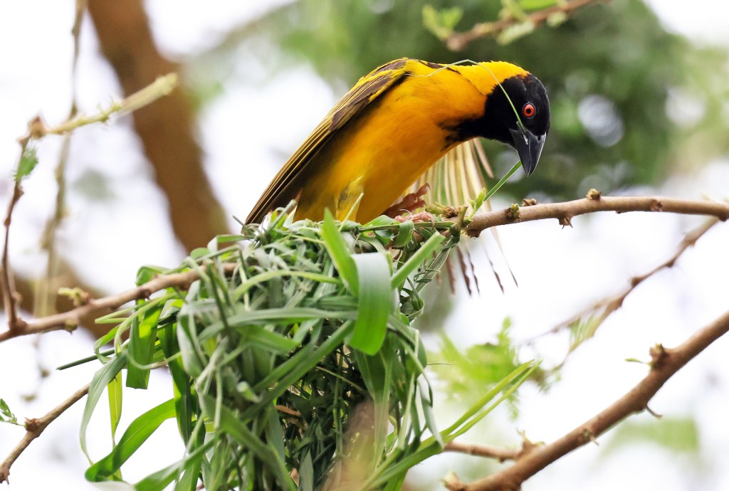 Black-Headed Weaver building a nest. February 26, 2022. Black-Headed Weaver building a nest. February 26, 2022.