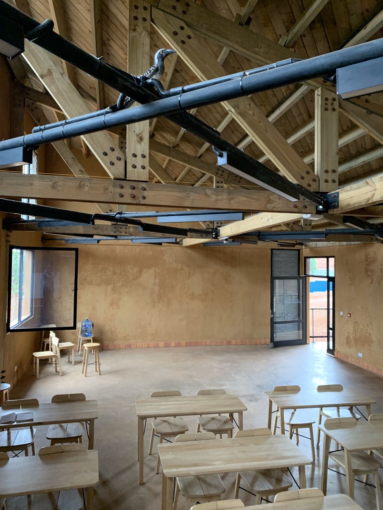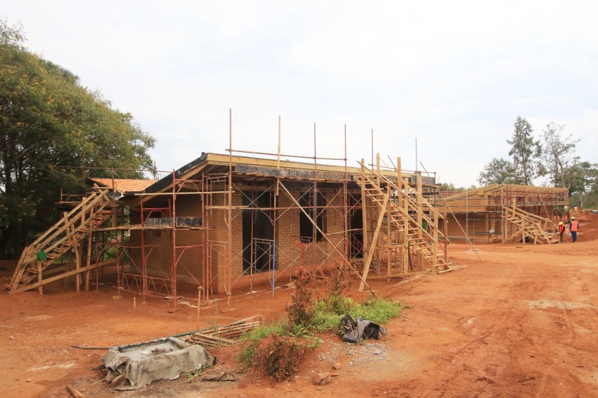 The second academic facility on the RICA campus is nearing completion. This is a complex of two buildings, both related to the mechanization and irrigation enterprise on campus. The building in the foreground, named Ifundi Hall (after the Fawn-breasted Waxbill) houses a classroom, the soils lab, offices, storage and workrooms. The second building is behind and not visible in this photo – Indonzi Hall (Cardinal Woodpecker), and is the farm shop. These buildings will be occupied and in use for Term 2, at the start of 2020. December 10, 2019.