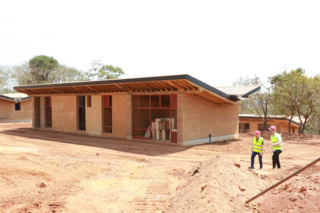 These buildings under construction on October 23, 2019, will be the first academic buildings used by RICA. Collectively these have been referred to as the Vegetable and Tree Fruit complex during construction. The three buildings in the complex have been given Kinyarwanda names after local flora and fauna: Inuma (Ring-necked Dove), Muduha (Candelabra Tree), and Rufunzo (Papyrus).