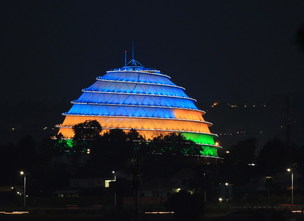 Rwanda Parliament building, from KG 13 Avenue in Kigali; in the Nyarutarama neighborhood where we live while Phase 1 of RICA campus construction is underway.