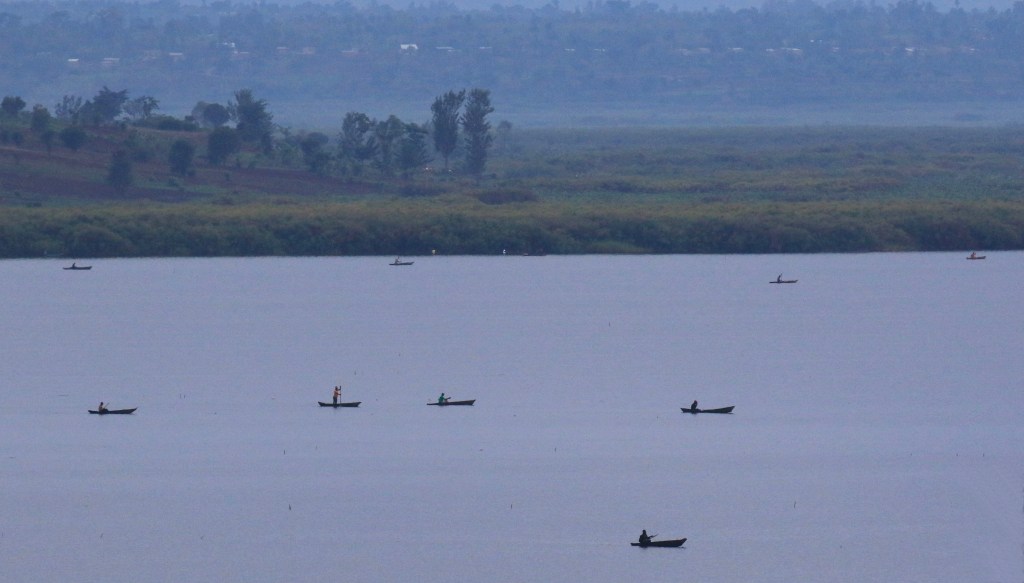 Fishermen working on Lake Kilimibi early in the morning, October 4, 2019.