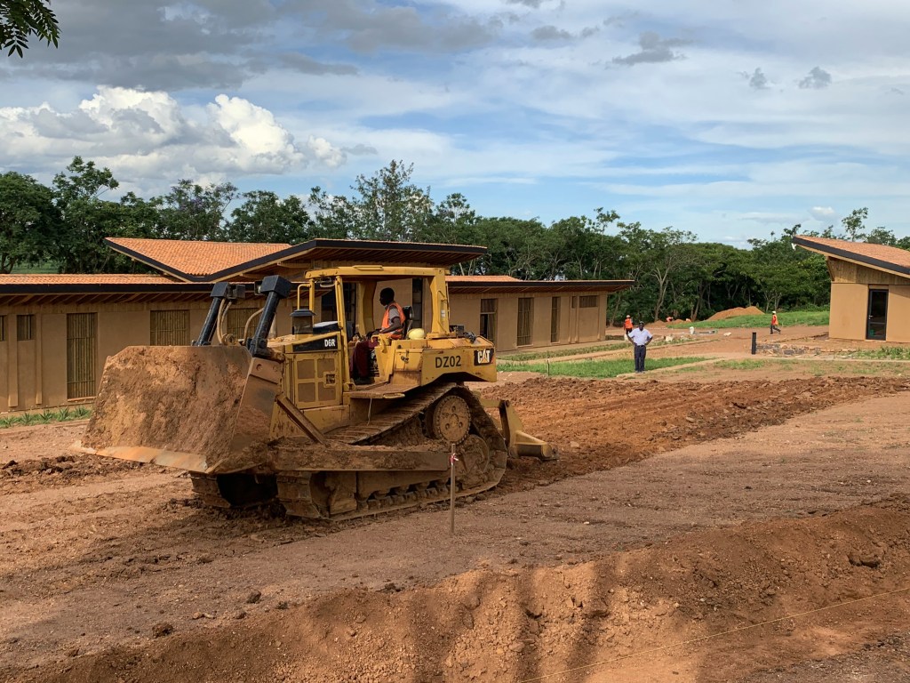 Land is being converted from a construction zone to farmland around the four First Year Farm houses. Here deep ripping is loosening soil, prior to topsoil being returned to the site. Each First Year Farm will have around 2.5 ha of land for students to farm, including some in existing orange and mango groves. A portion of each farm will be drip irrigated. December 16, 2019.