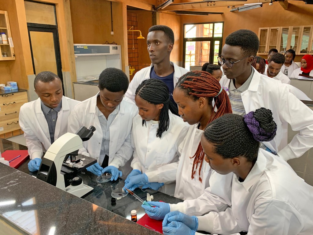 First use of our new microscopes, in RICA’s newly completed Biology Lab. January 14, 2020.