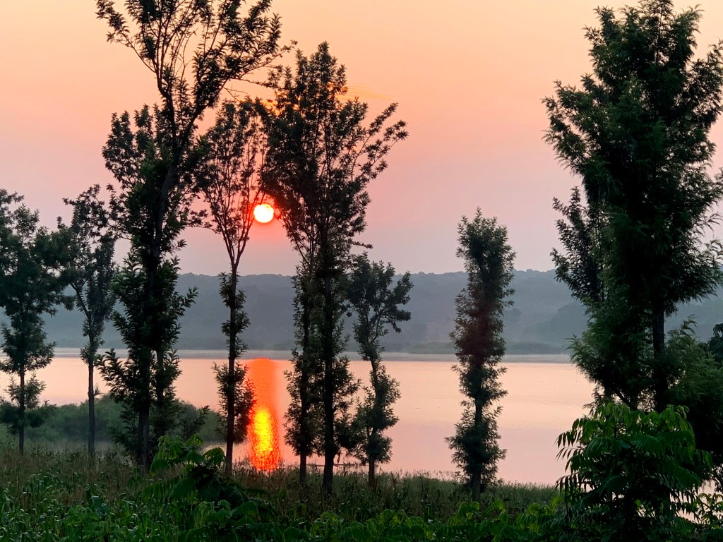 Sunrise over Lake Kilimbi and the campus of the Rwanda Institute for Conservation Agriculture. January 15, 2020.